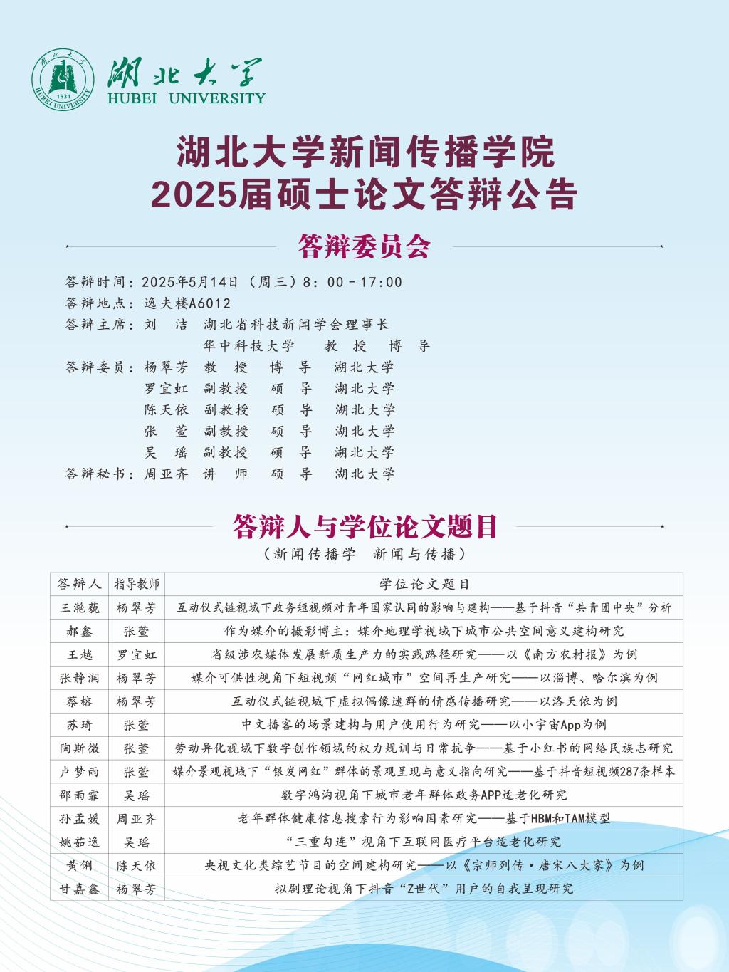 英国威廉希尔WilliamHill2025届硕士论文答辩公告(第四组)