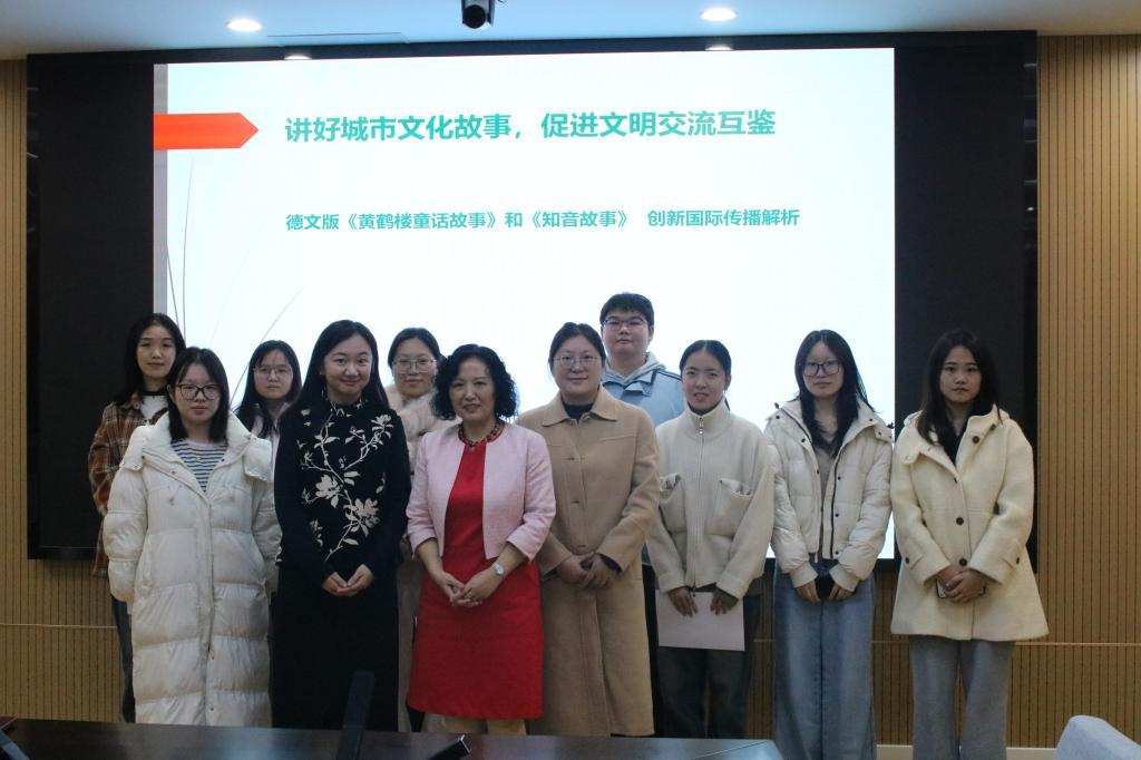 11月17日下午,德国明斯特大学中国研究中心主任周俊教授莅临我院,以“讲好城市文化故事 ,促进文明交流互鉴——德文版《黄鹤楼童话故事》和《知音故事》 创新国际传播解析”为题开展专题讲座。讲座由学院副经理黎明主持,部分师生参加,共同探讨中国故事的国际化表达与城市文化的跨文化传播之道。