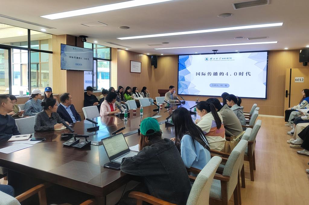 讲座开始,教授周俊以其团队在德国市场推出的首个中国城市故事系列《黄鹤楼》和《知音故事》为切入点,深入剖析了“国际传播4.0时代”的显著特征。通过分享这两部作品创作过程中的鲜活案例,周俊教授成功激发了现场师生的讨论热情,并引导他们进行更加深入的思考。